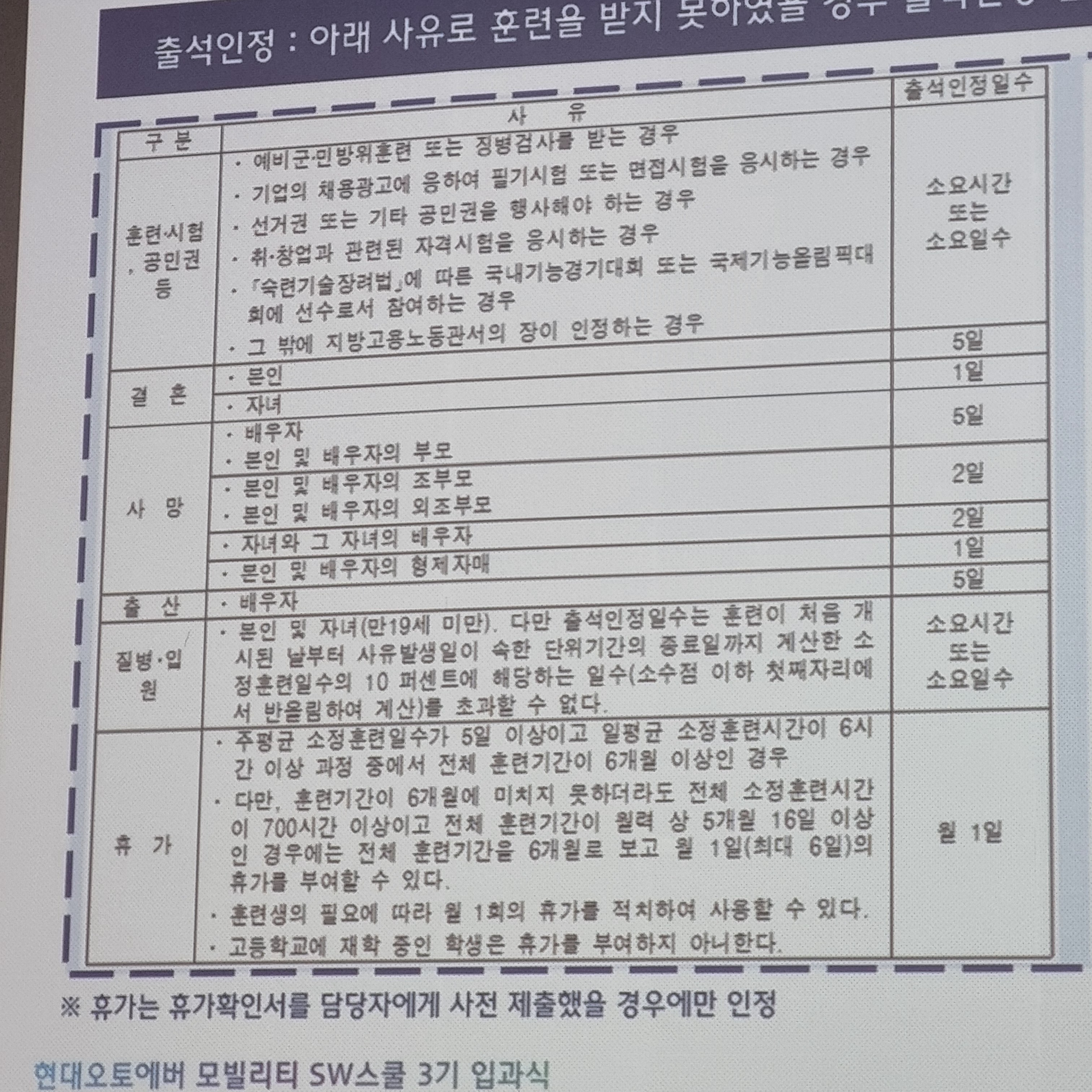 - 결석 허용 사유 목록(아래 사진)
