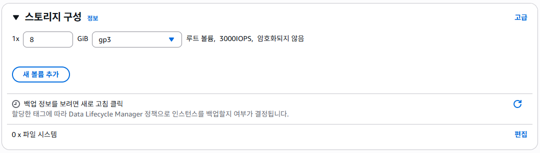 ▪️스토리지 구성: 인스턴스에 연결할 디스크(EBS 볼륨)를 설정