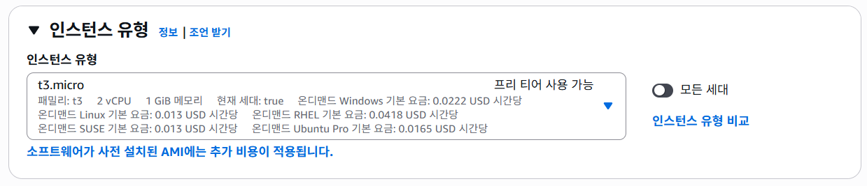 ▪️인스턴스 유형: 서버 사양 고르기