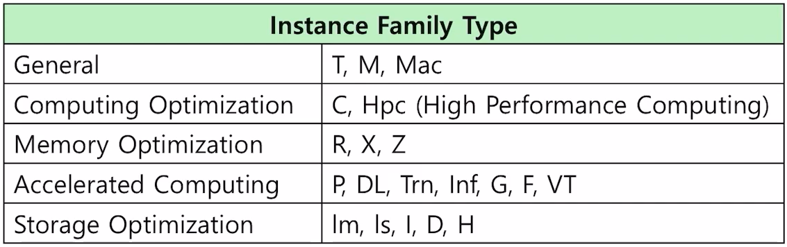 - 앞 영문: 인스턴스 패밀리