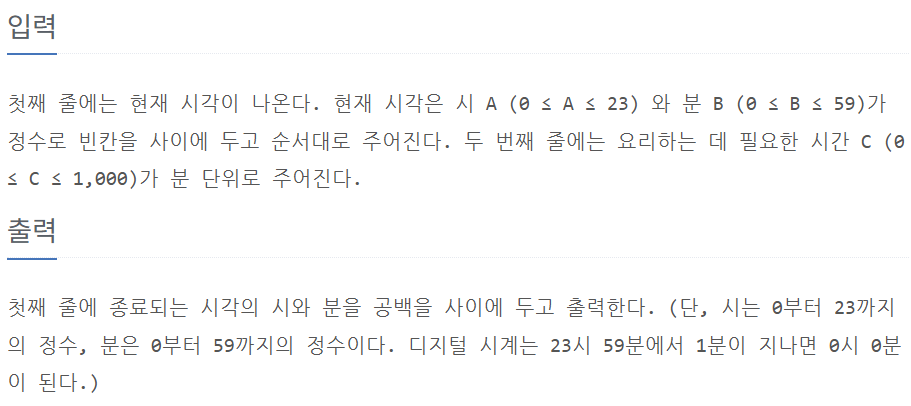 그래서 B+C를 60으로 나눈 몫을 plus 변수로 두고, 변화된 시, 분에 적용했다.